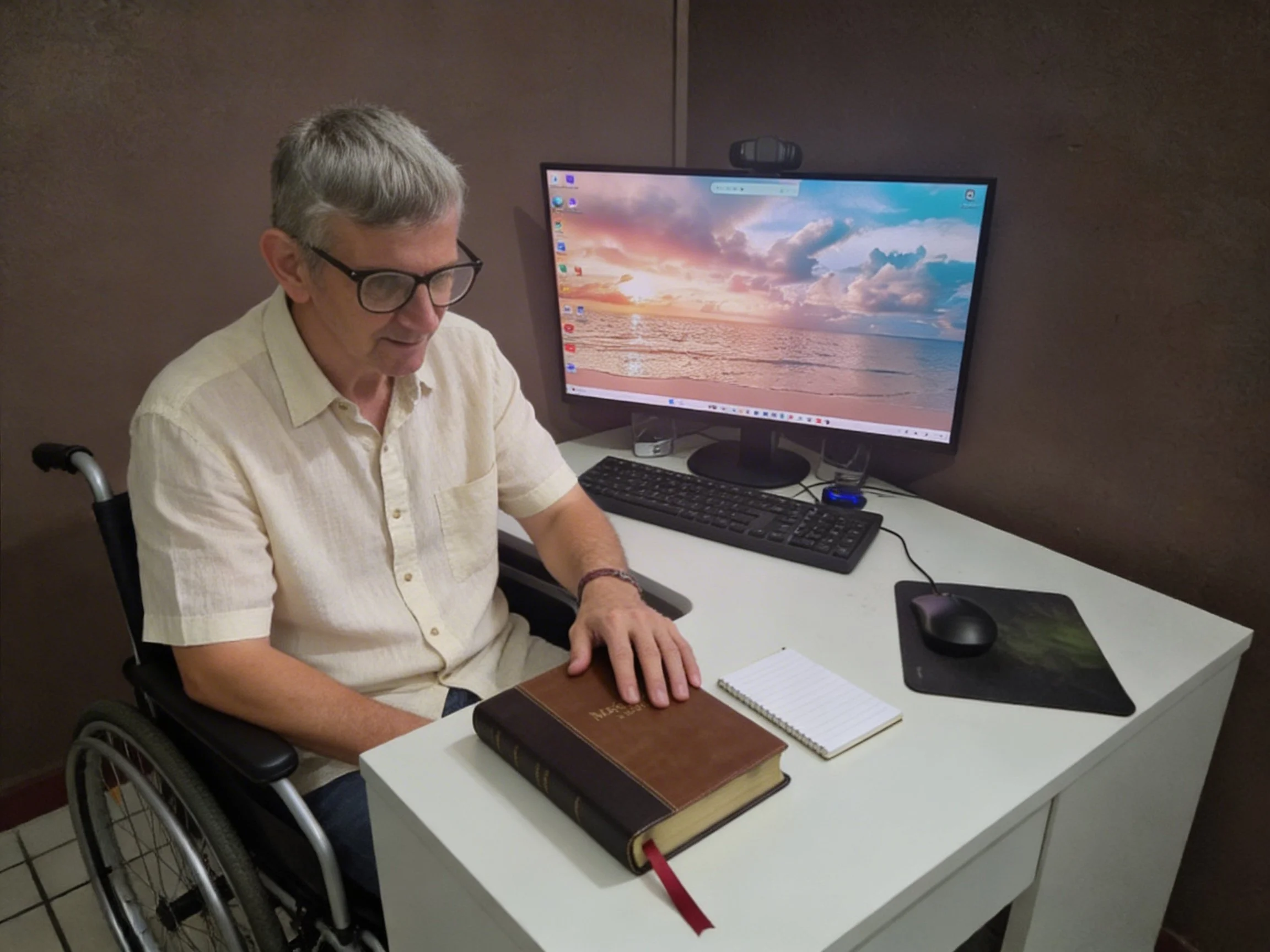 At my desk during recovery, turning to Scripture and preparing to write.