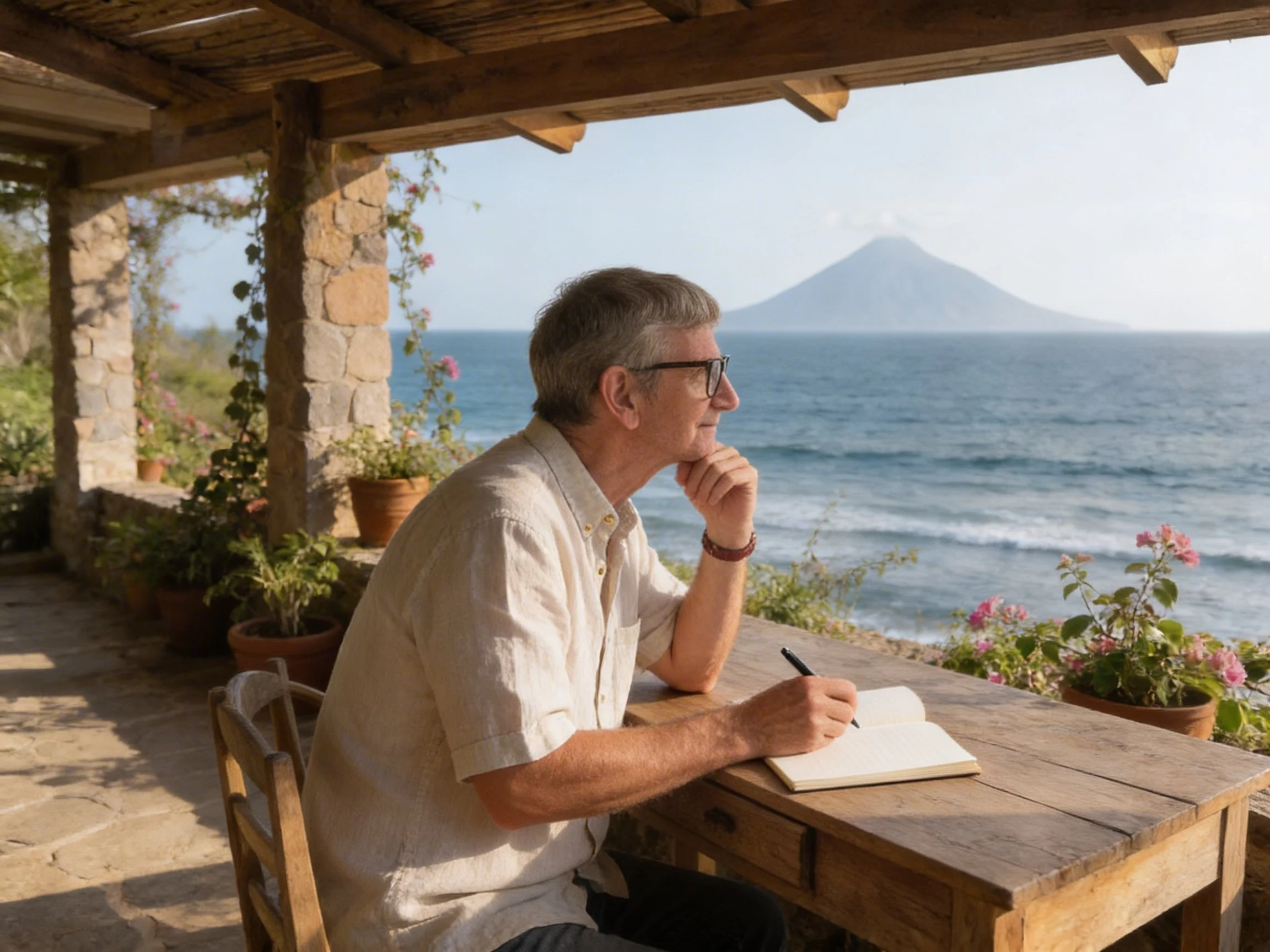 Steve writing along the coast of Nicaragua, reflecting on faith and perseverance.